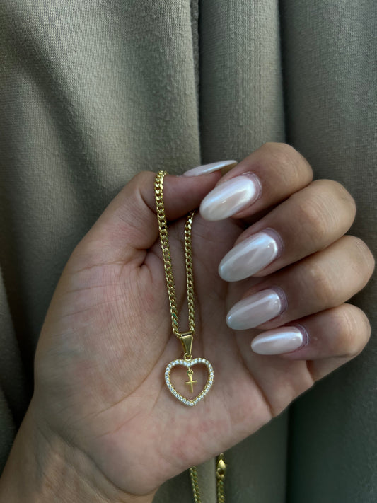 Combo Mujer Cadena Cubana Eslabón + Dije Corazon + Circones