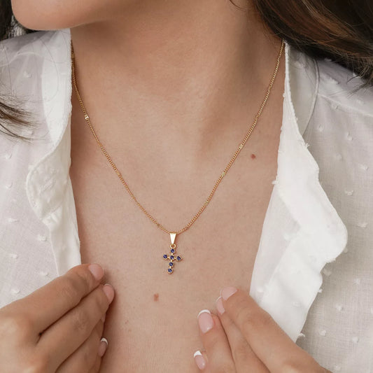 Dije Cruz 6 Circonias Azul